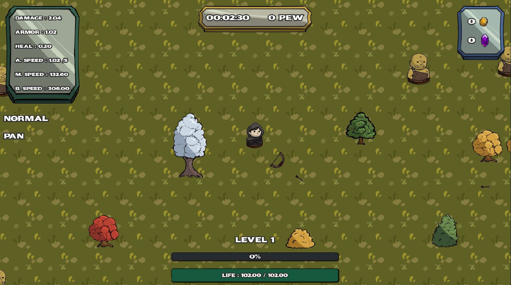 Pew pew is a top-down action roguelike focused on fast gameplay and meaningful progression choices.